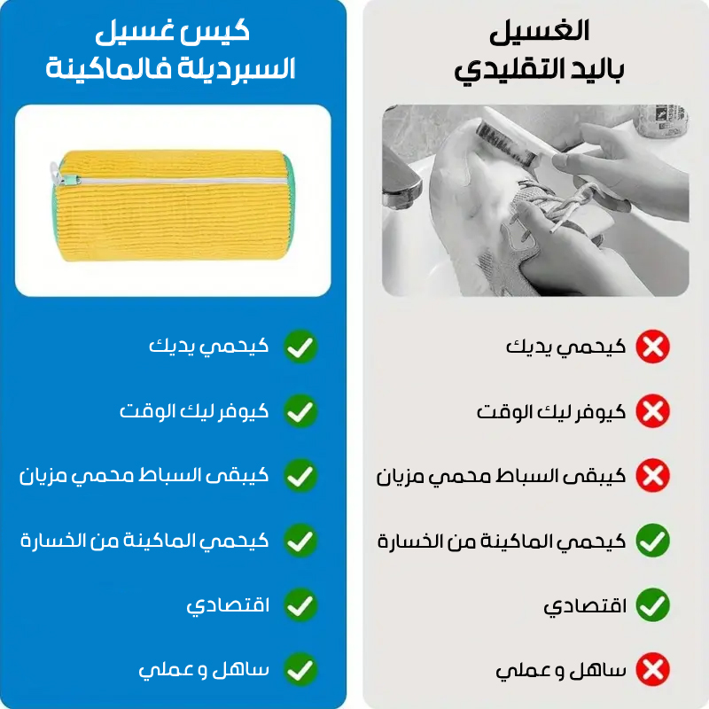 كنت ديما كنغسل السباط باليد حيت كيتخدش فالماكينة. هاد الكيس حلّ ليا المشكل، غير ندخلو ونرتاح